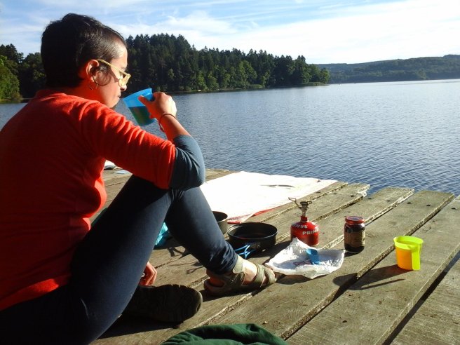 Journée qui a commencé au soleil sur un ponton donnant sur le lac. On a pu faire sécher toutes nos affaires et prendre un bon petit déjeuner avec les croissants offerts par la boulangère la veille à Montsauche.