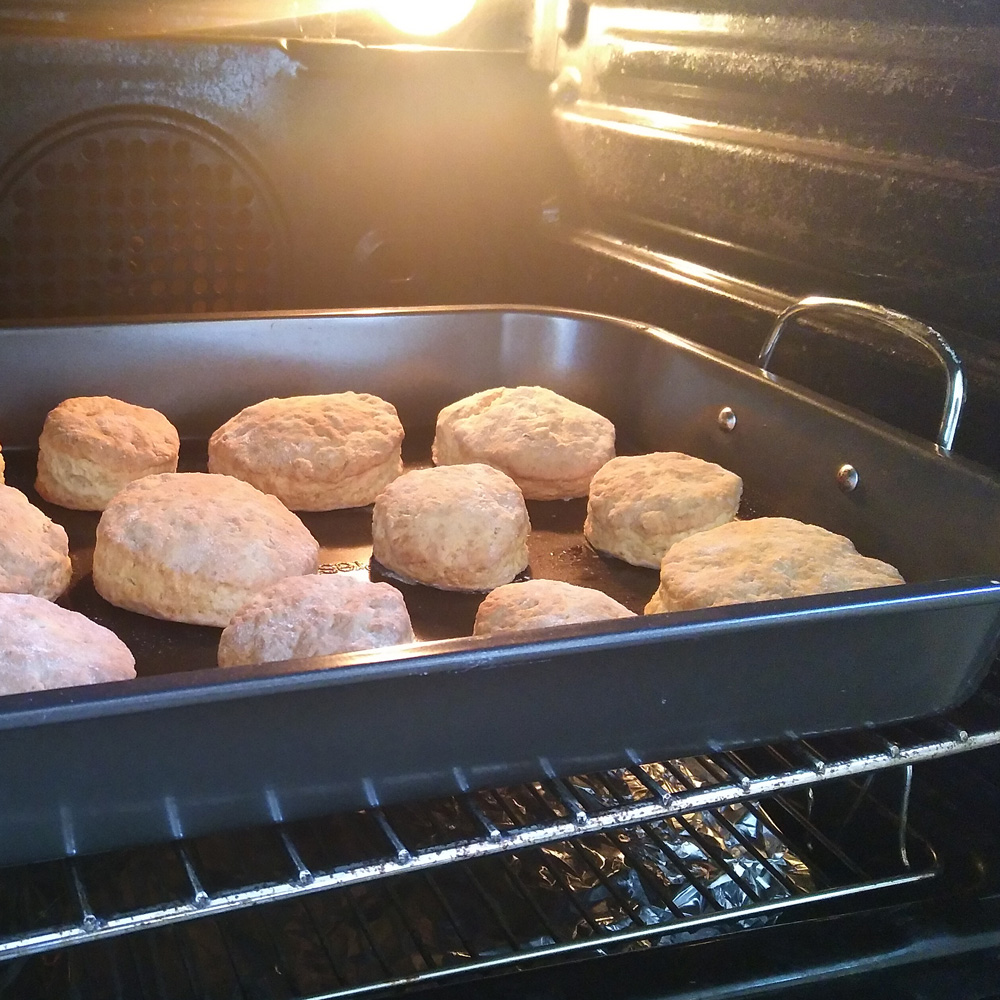 đșđž Yesterday, I made my very first scones for breakfast! And finally, all of our meals for the day were based on scones. For afternoon tea, mine was stuffed with basil pesto, butter and cheddar cheese. I also tried some with tartar sauce and tuna: it wasn’t bad, but they put sugar in all the sauces here, and I still can’t appreciate that. I need to learn how to make garlic mayonnaise to eat with fish and chips…