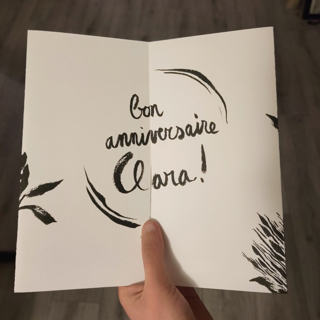 - Dessin d’une carte d’anniversaire pour Clara : je suis bien contenx du rĂ©sultat !