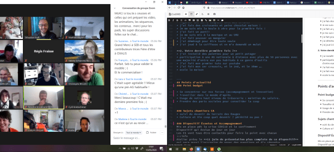 🇫🇷 Hier, c'était une grande première : on a fait une pré-AG d'Oxalis en visioconférence qui a réuni entre 50 et 60 personnes pendant 3h. C'était vraiment chouette de se retrouver toutes et tous, de partager de bonne nouvelles pour la coopérative! C'était un très chouette moment de convivialité, surtout en tenant compte du format … Lire la suite Experimenting a 50 participants videoconference